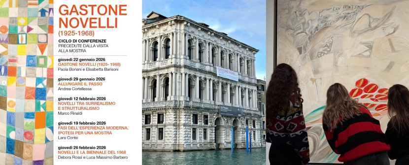 Dal 22 gennaio al 26 febbraio 2026, a Ca' Pesaro - Galleria Internazionale d'Arte Moderna di Venezia si terrà un ciclo di conferenze preceduto da visita guidata alla mostra “GASTONE NOVELLI (1925-1968)”.