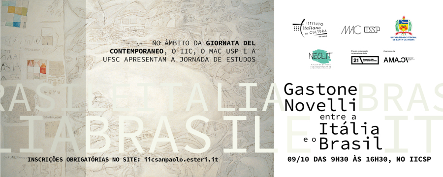 Nell’ambito della Giornata del Contemporaneo, il 9 ottobre l'Istituto Italiano di Cultura San Paolo, in partnership con Museu de Arte Contemporânea da Universidade de São Paulo (MAC USP) e Universidade Federal de Santa Catarina (UFSC), promuove una giornata di studi su Gastone Novelli. L'evento rientra nelle attività collaterali della mostra "L'arte deve vivere al sole: Gastone Novelli in Brasile", fino al 12 ottobre al MAC USP.
